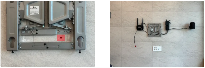무타공은 콘센트 단자함의 위치가 TV의 중앙이 되는 시공방법이기 때문에 한 쪽으로 치우쳐 있으면 무타공 시공이 어렵습니다.